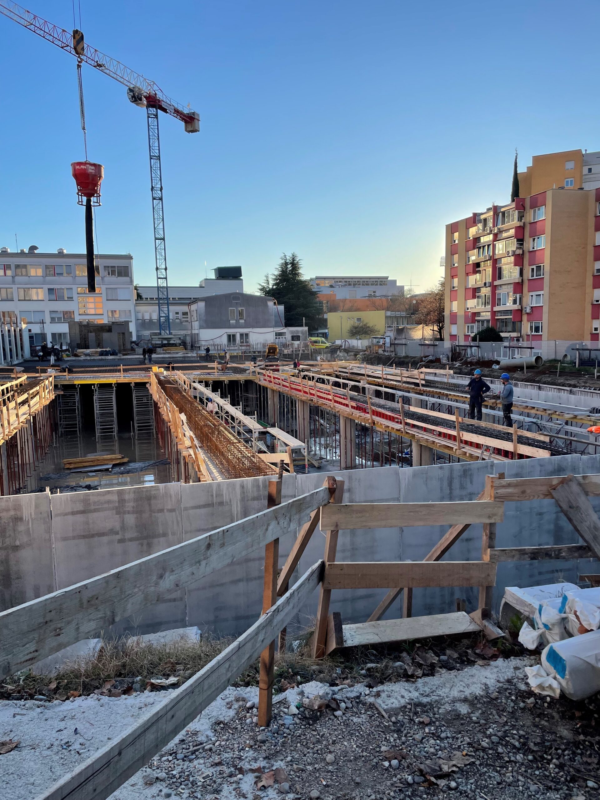 Reconstruction, extension and new construction of the extension of the Nova Gorica Medical Center – III. phase, placement of the new building, which consists of an underground garage building and an above-ground building for health care. The construction of a 2K+F+3 building with a size of 21,065 m2 is planned. The Faresin formwork system is used for the walls.